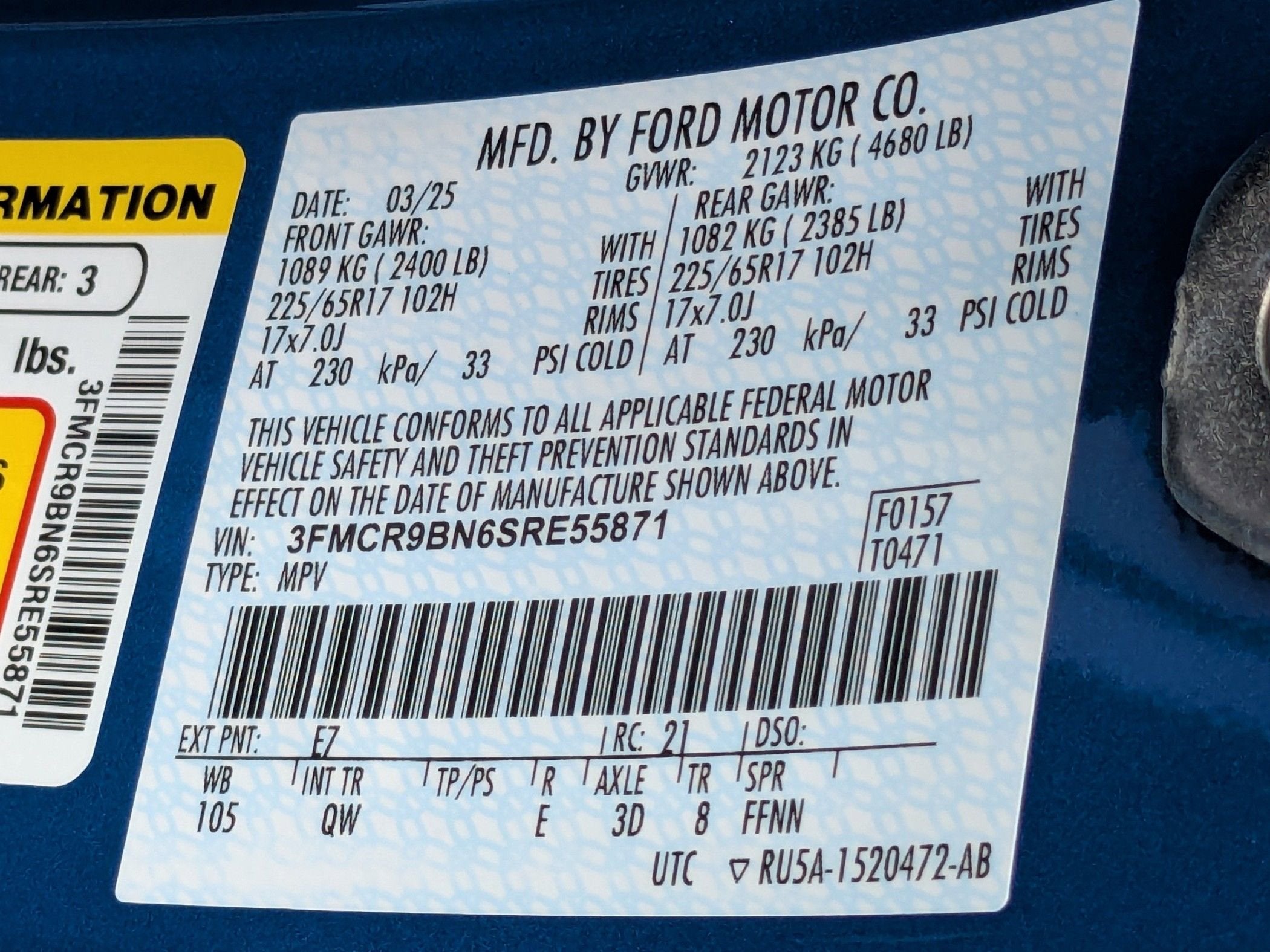- Vehicle Name: Ford Bronco Sport