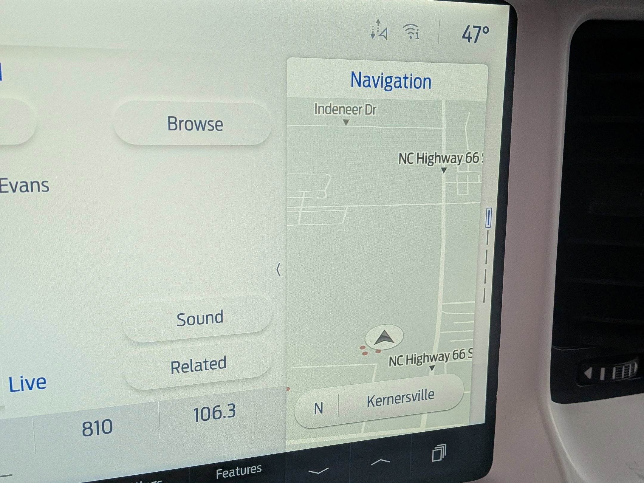 - Connected Navigation -inc: Ford connectivity package, pinch-to-zoom capability, live traffic, predictive destinations and route guidance and One Box search