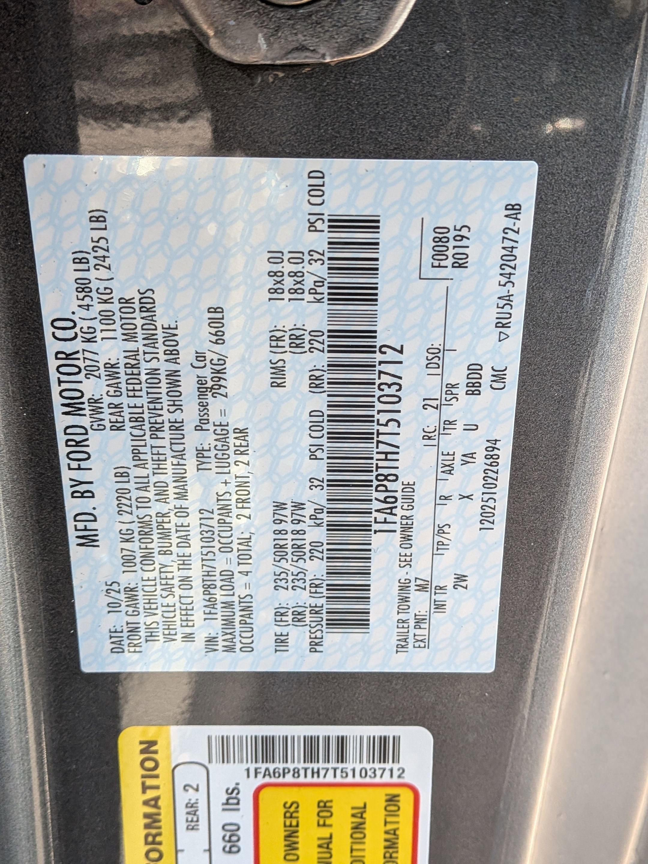 - Vehicle Name: Ford Mustang