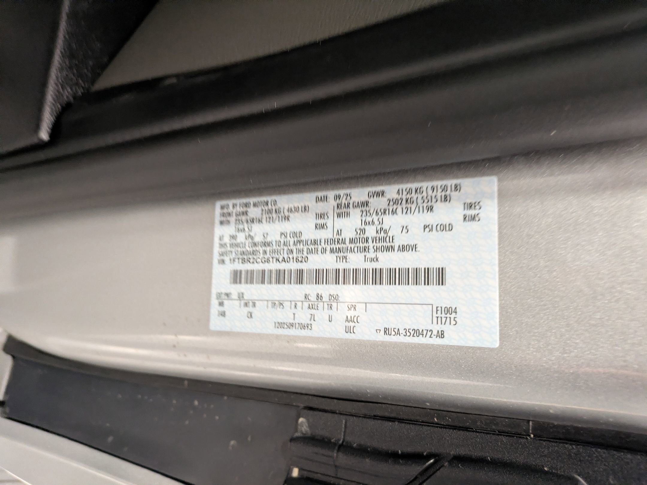 - Rear Tire Size: LT235/65RR16