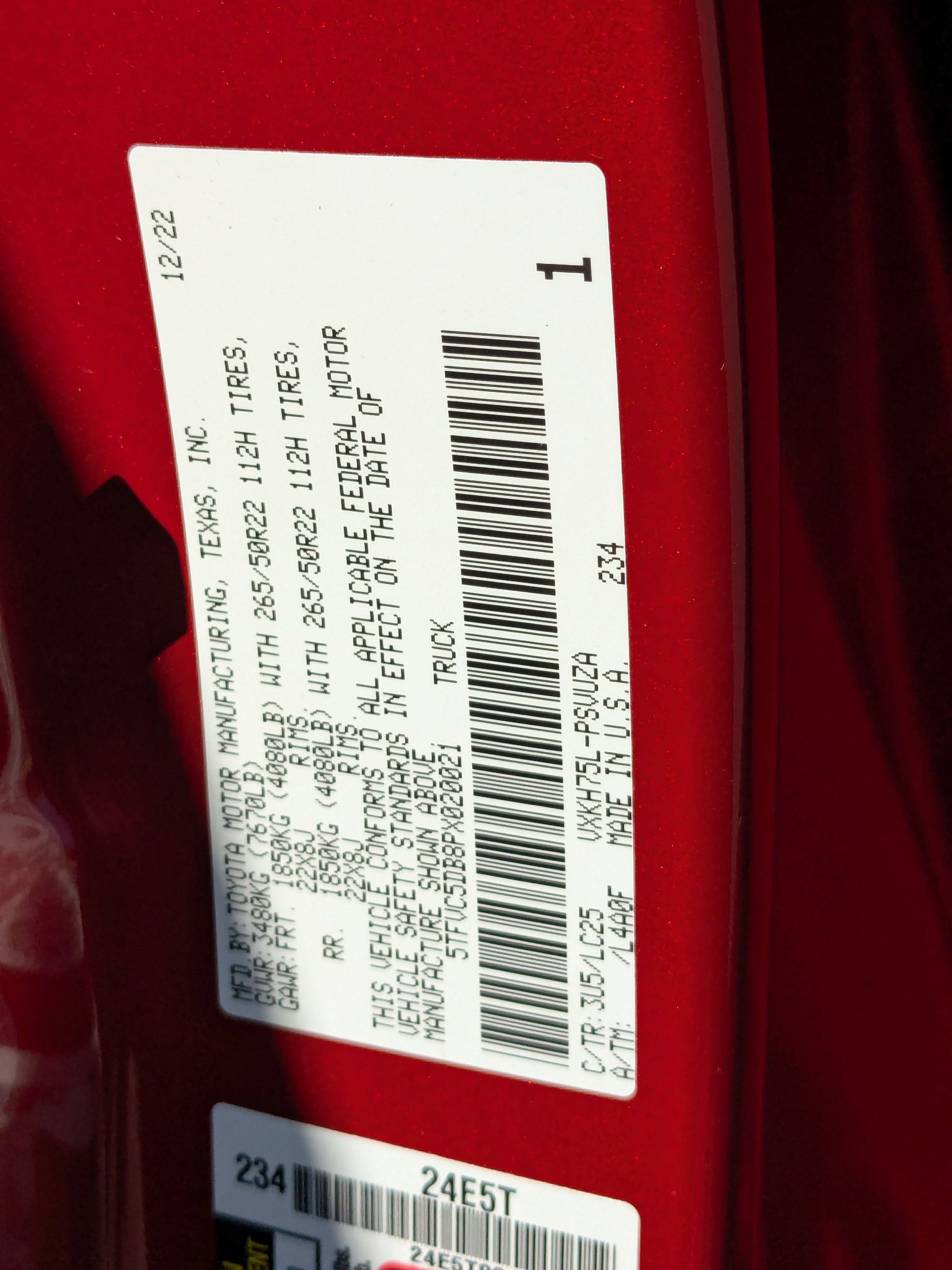 - Front Tire Size: P265/50HR22