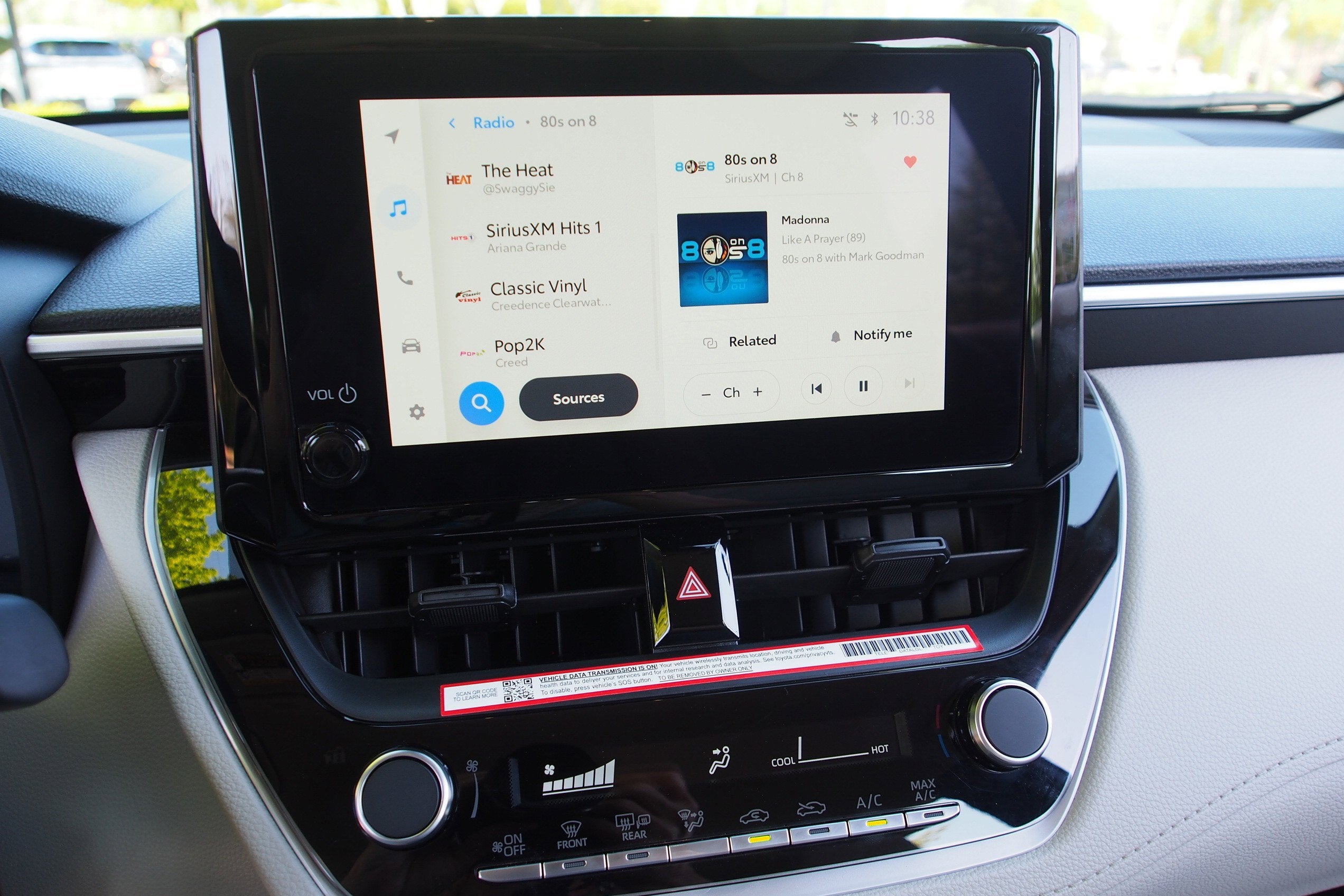 4-Wheel Disc Brakes, 6 Speakers, ABS brakes, Air Conditioning, AM/FM radio: SiriusXM, Auto High-beam Headlights, Brake assist, Bumpers: body-color, Delay-off headlights, Driver door bin, Driver vanity mirror, Dual front impact airbags, Dual front side impact airbags, Electronic Stability Control, Emergency communication system: Safety Connect (10-year trial), Exterior Parking Camera Rear, Fabric Seat Trim, Front anti-roll bar, Front Bucket Seats, Front Center Armrest, Front reading lights, Front Seats, Front wheel independent suspension, Heated door mirrors, Illuminated entry, Knee airbag, Low tire pressure warning, Occupant sensing airbag, Outside temperature display, Overhead airbag, Panic alarm, Passenger door bin, Passenger vanity mirror, Power door mirrors, Power steering, Power windows, Radio data system, Radio: 8" Toyota Audio Multimedia with 6 Speakers, Rear anti-roll bar, Rear side impact airbag, Rear window defroster, Remote keyless entry, Speed control, Split folding rear seat, Spoiler, Steering wheel mounted audio controls, Tachometer, Telescoping steering wheel, Tilt steering wheel, Traction control, Trip computer, Turn signal indicator mirrors, Variably intermittent wipers, Wheels: 17" Steel with Covers.